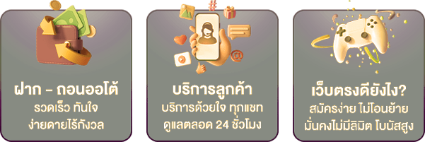ตอบ : - มีใบอนุญาตถูกกฎหมาย ระบบความปลอดภัยมาตรฐานสากล รองรับการเล่นผ่านมือถือ มีโปรโมชั่นและเครดิตฟรีมากมาย พร้อมทีมงานดูแล 24 ชม.